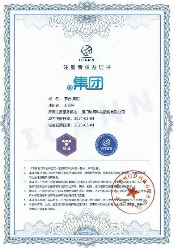 行业精准域名[茅台.集团]出售,绝佳记忆点助力品牌腾飞!