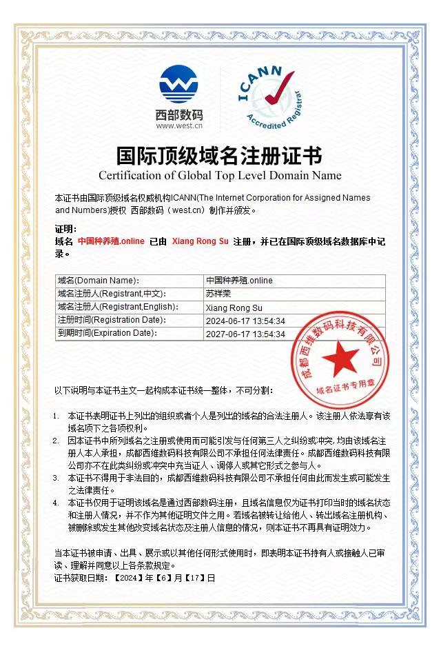 行业精准域名[中国种养殖]出售,绝佳记忆点助力品牌腾飞!
